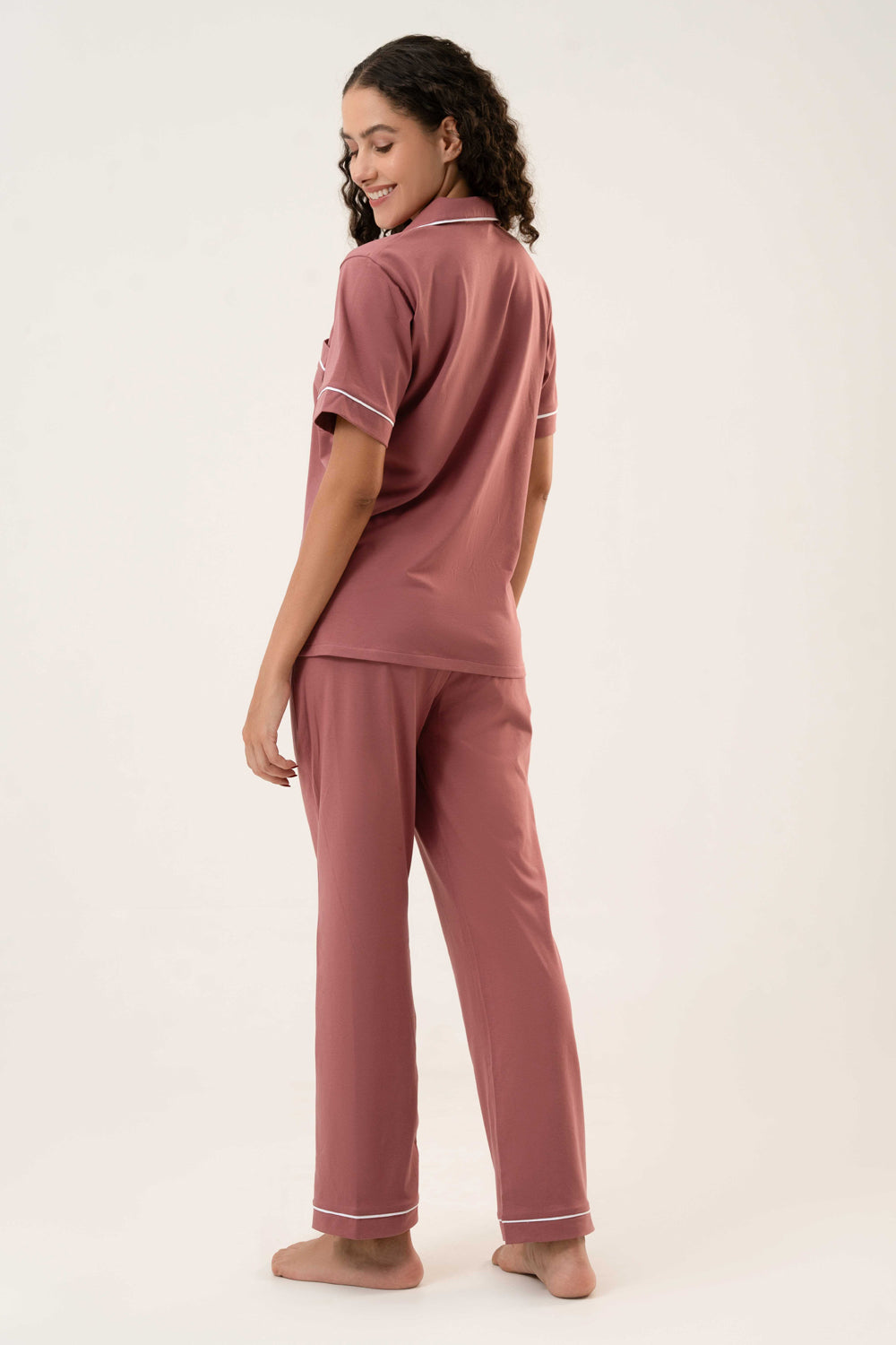Cotton Short Sleeve & Pant PJ Set – Dusty Rose